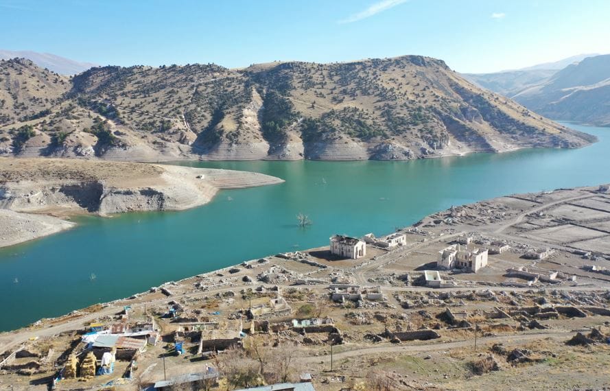 Baraj kapaklarının kısmen açılmasıyla su seviyesi düşünce köydeki evler, cami, kilise ve bazı tarihi binalar gün yüzüne çıktı.