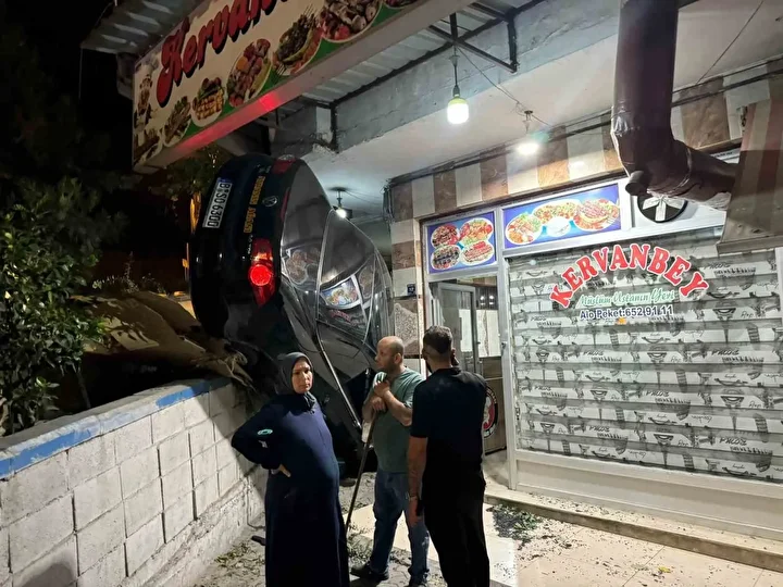 Kontrolden çıkan otomobili durdurmak isteyen Şükrü O., fren yerine gaza basınca yaklaşık 3 metreden lokantanın bahçesine uçtu. Kazadan yara almadan kurtulan sürücü çevredekilerin yardımıyla otomobilden çıkarıldı.